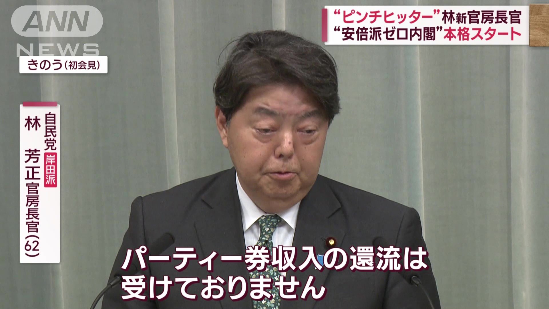 「(Q.官房長官ご自身は、政治資金については法律にのっとって適切に処理されているんでしょうか?)私自身ということでお尋ねがありましたが、今回指摘をされておりますパーティー券収入の還流は受けておりません」