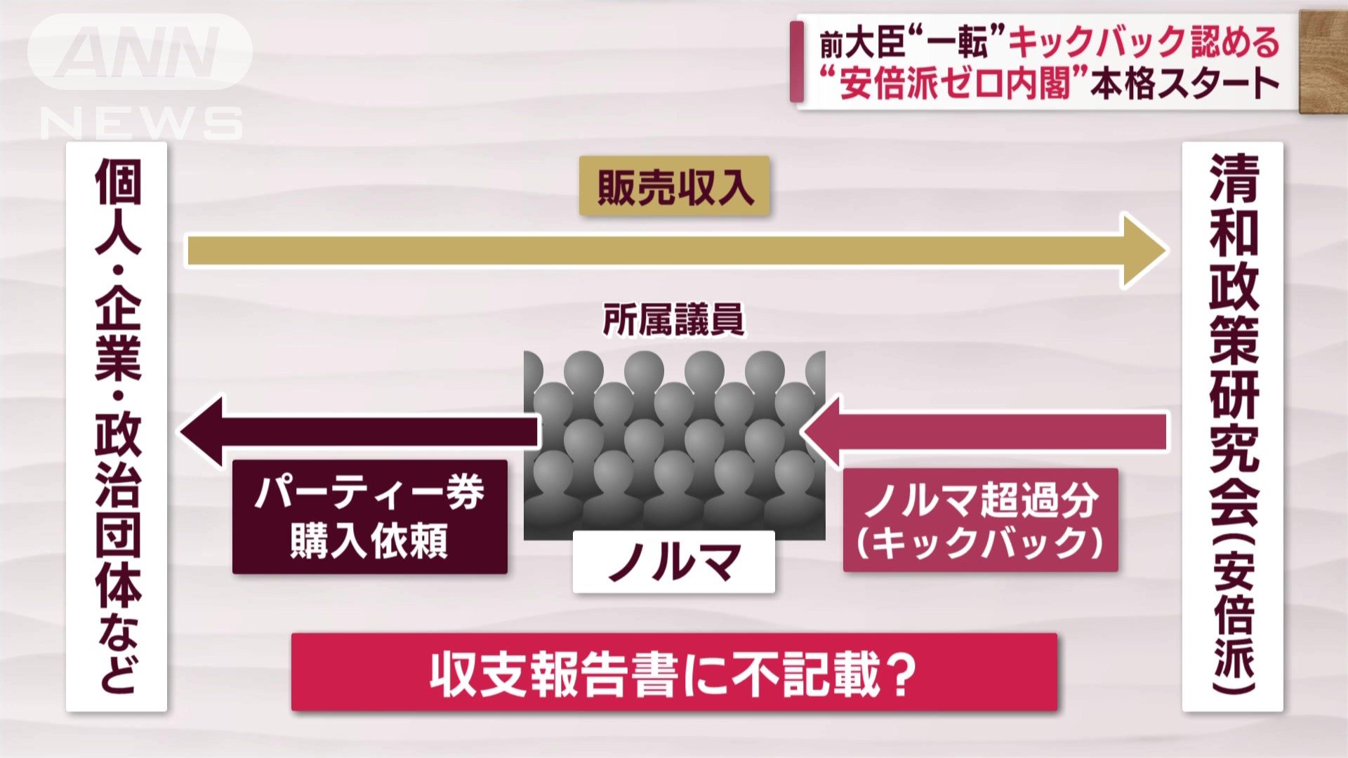 一方、辞任したばかりの安倍派の前大臣がパーティー収入のキックバック未記載を一転、認めました。