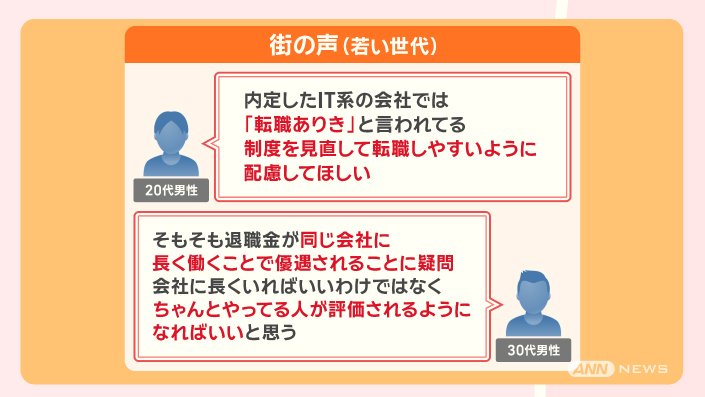 ■『退職金課税』背景に雇用の流動化 各年代の意見は■『退職金課税』背景に雇用の流動化 各年代の意見は
