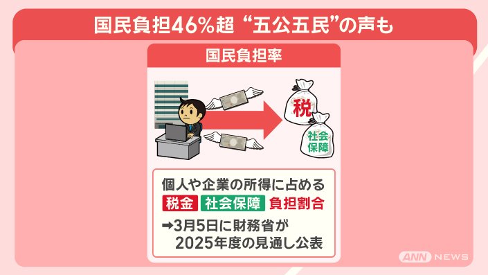 財務省が、2025年度の国民負担率が46%になる見込みであると公表したことを受けて、ネット上では、まるで江戸時代の年貢負担『五公五民』だという声が挙がっています。