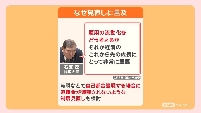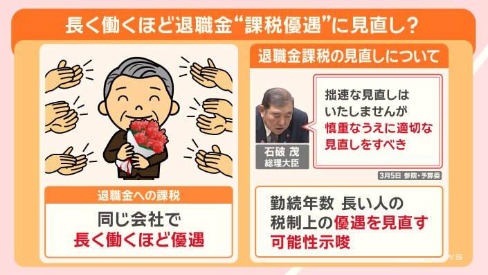 さらに、石破総理が、勤続年数が長い人への優遇措置がある『退職金課税制度』の見直しについて言及、就職氷河期世代から不安と不満の声が挙がっています。