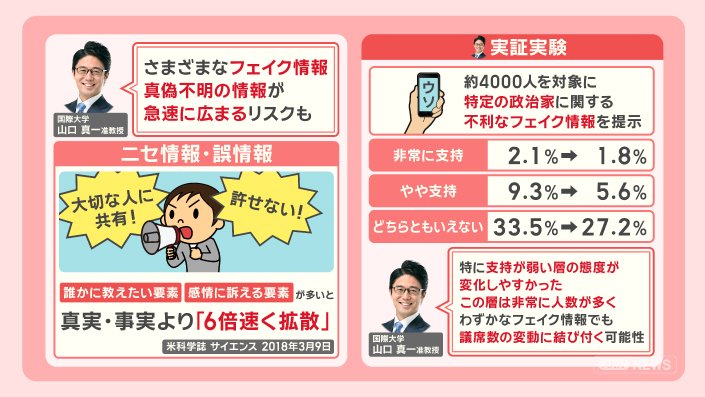 「特に支持が弱い層の態度が変化しやすかった。この層は非常に人数が多く、わずかなフェイク情報でも、議席数の変動に結び付く可能性がある」ということです。