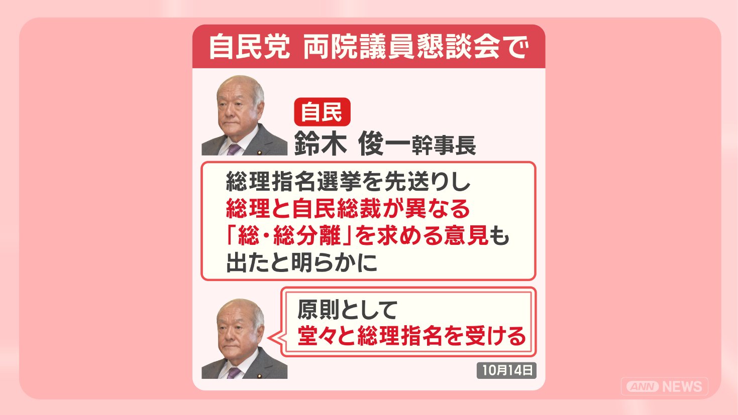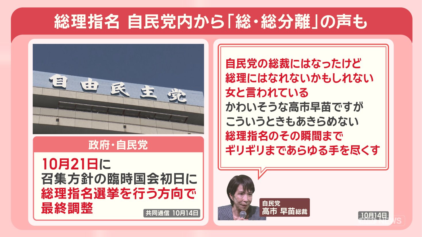 ■臨時国会10月21日召集へ「総・総分離」求める声も