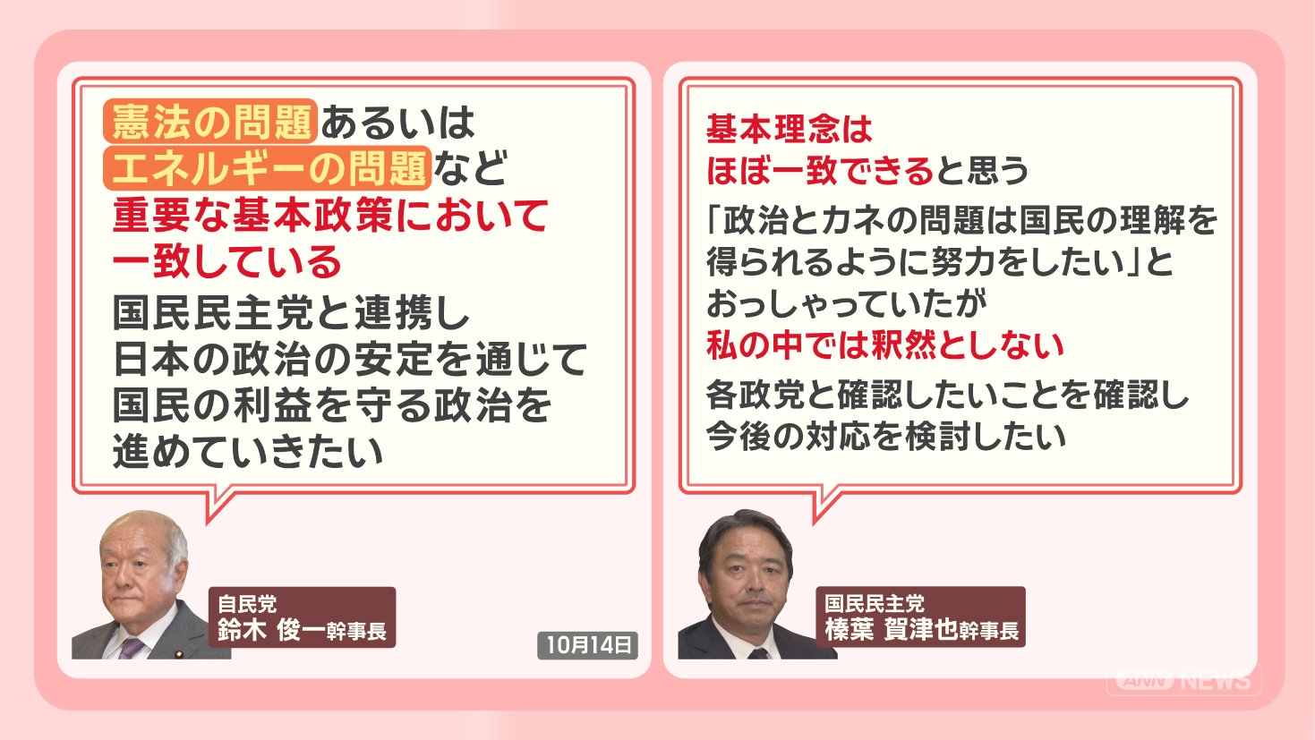 ■自民・国民 幹事長会談「基本理念は一致」も連立は?