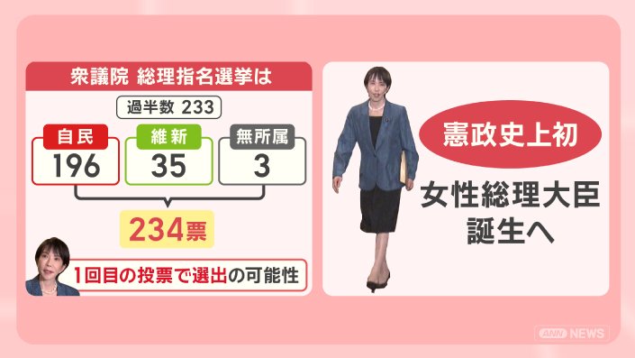 ■憲政史上初 女性総理誕生へ 高市氏 1回目で選出も