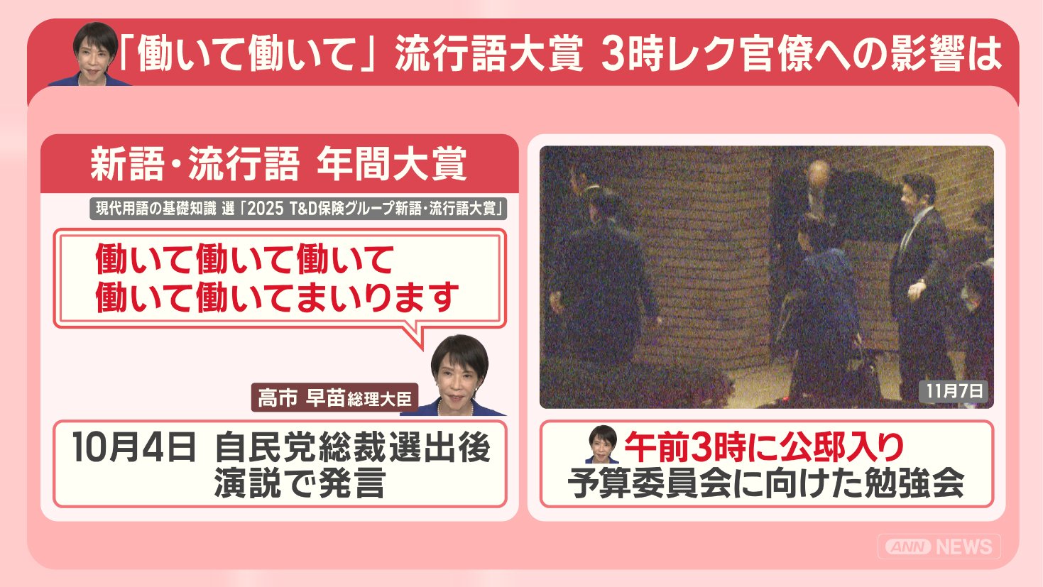 2025年の『新語・流行語大賞』に高市総理の「働いて働いて…」という発言が年間大賞に選ばれ、総理周辺の働き方が注目されています。