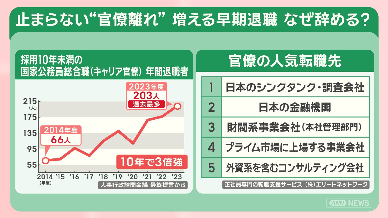 ■進む官僚離れ『働き方』『待遇』理由に相次ぐ早期退職 ・転職