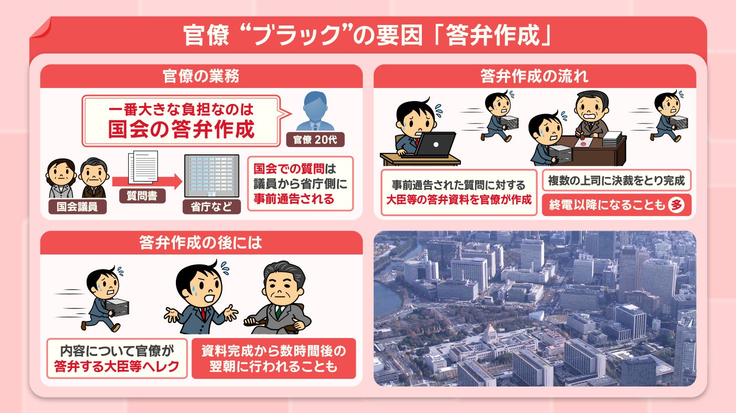 国会を支える官僚たちの働き方は長時間労働などで『ブラック霞が関』とも言われていますが、高市政権になってどんな変化があったのか見ていきます。