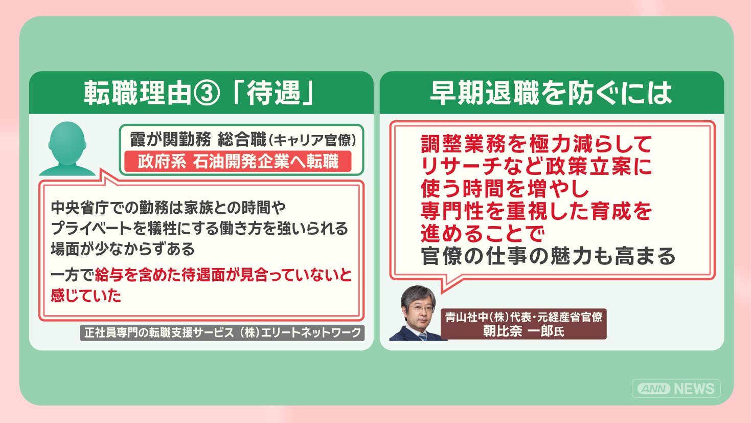 「中央省庁での勤務は家族との時間やプライベートを犠牲にする働き方を強いられる場面が少なからずある。一方で給与を含めた待遇面が見合っていないと感じていた」
