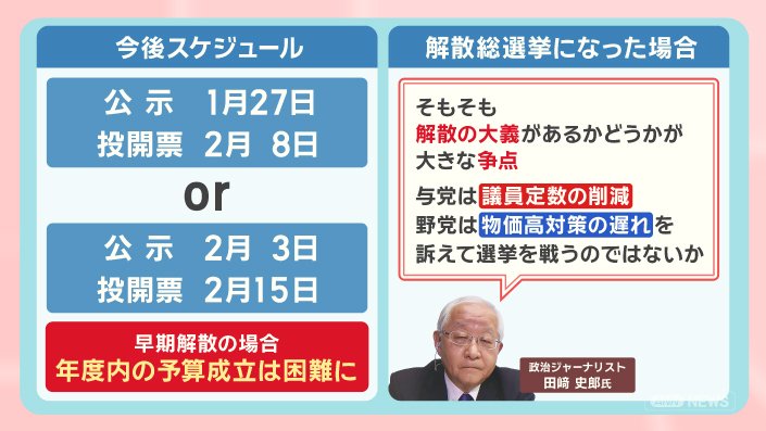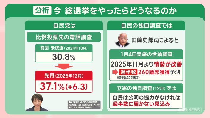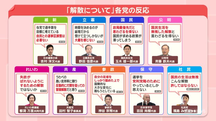 政治 モーニングショー 2026年1月14日 16:00 高市人気“堅調”も自民支持は伸び悩み 総選挙やったらどうなる?各党の議席を予想 広告 1■高市総理 自民幹部に解散の意向伝達か 選挙の争点は? この記事の写真は15枚 ■内閣支持率高も自民党は伸び悩み なぜ?総選挙 勝つには ■総選挙 今やったらどうなる?データで見る各党の議席予想 ■解散について各党の反応 「政局最優先」「国民生活を無視」 (「羽鳥慎一モーニングショー」2026年1月14日放送分より) 広告 スクープ投稿 トップ 政治 国政 記事