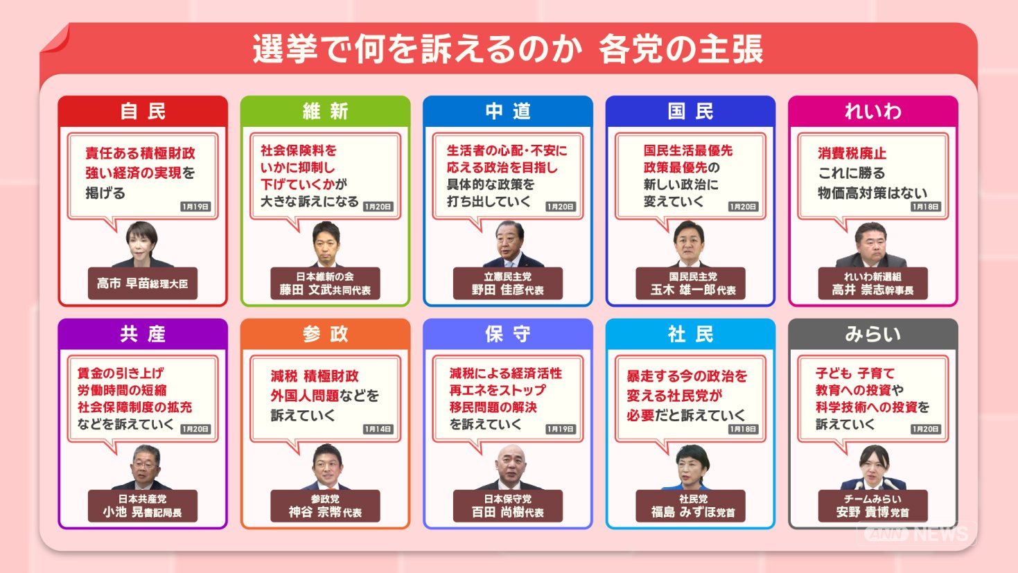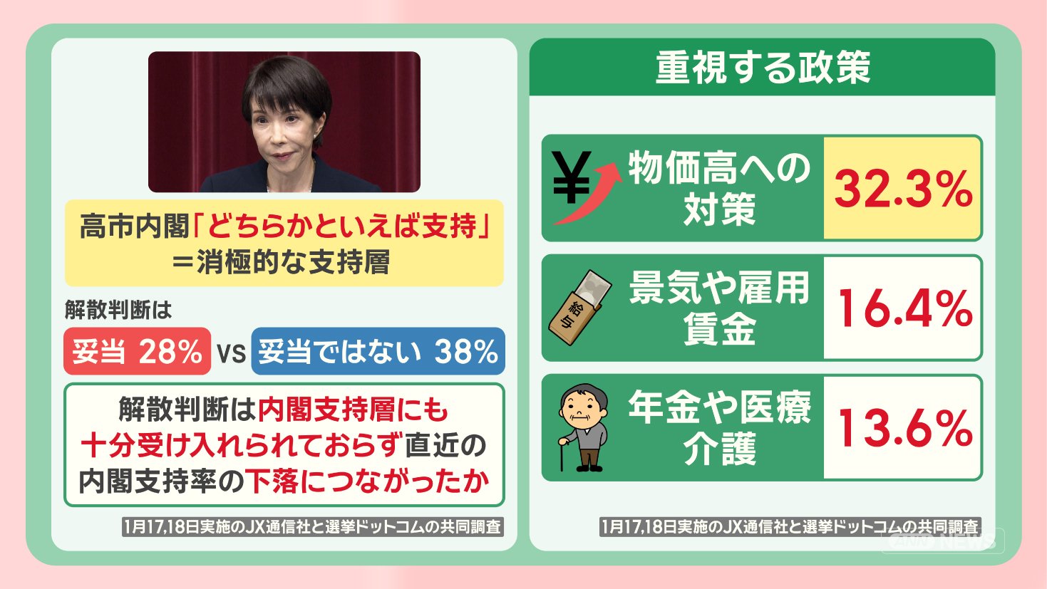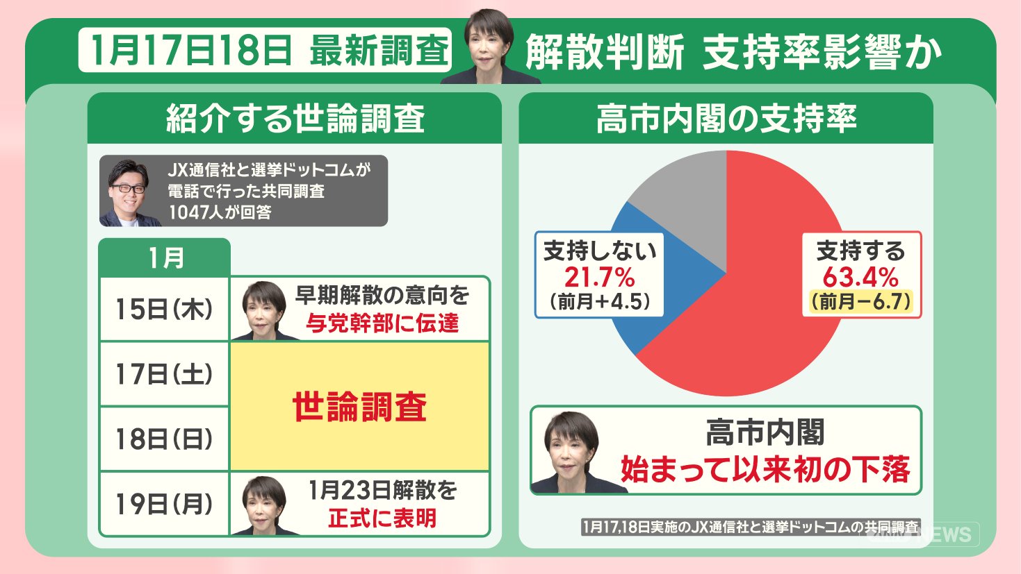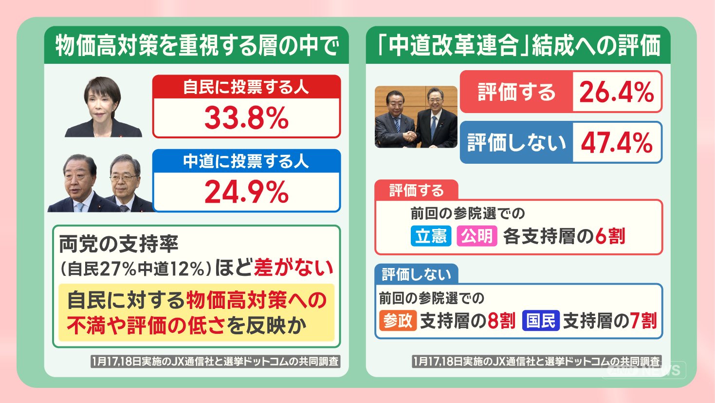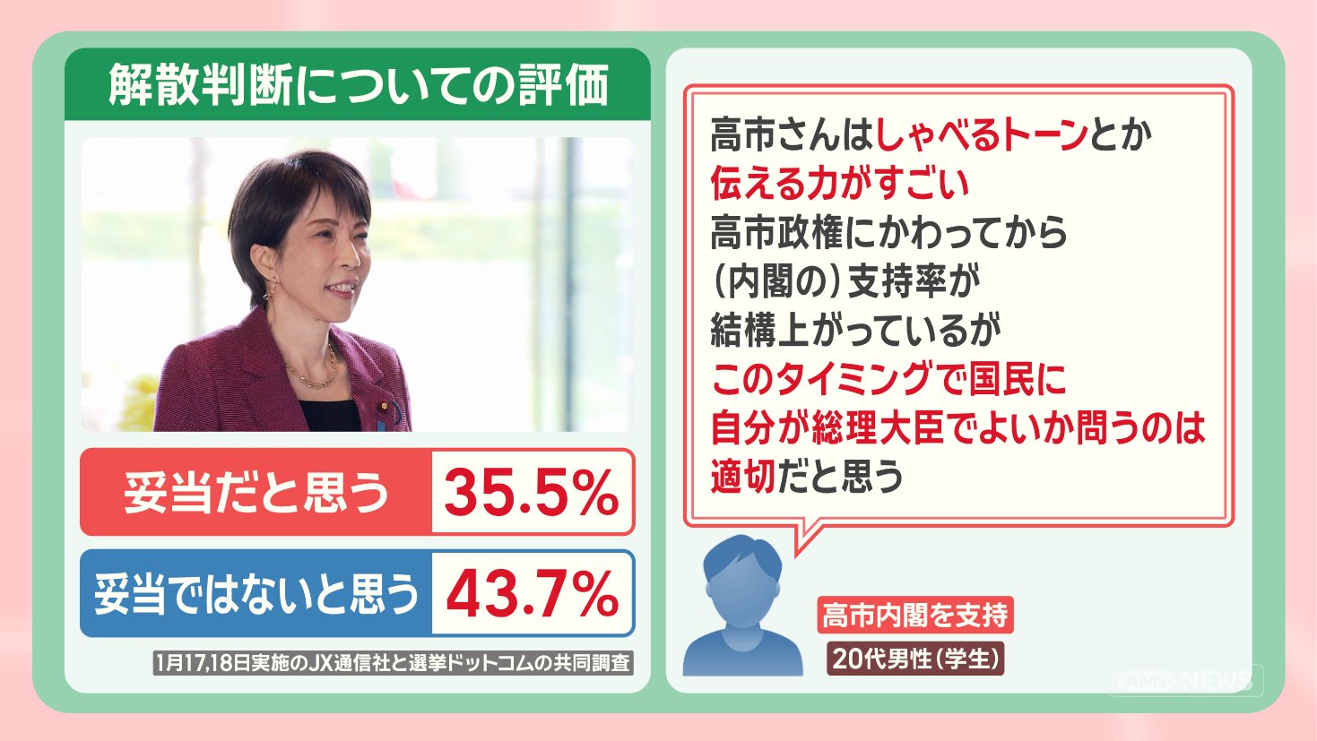 政治 モーニングショー 2026年1月21日 16:00 高市内閣『解散判断』支持率に影響?勝敗のカギは“無党派層”最新調査から見る衆院選 広告 1■新党『中道』立憲から180人 一部不参加 国民からは合流も この記事の写真は14枚 ■高市内閣初の支持率下落 最新調査「物価高対策」を重視 ■勝敗のカギは“無党派層” 前回衆院選では「躍進の原動力」 ■衆院選 何を訴える?各党の主張 (「羽鳥慎一モーニングショー」2026年1月21日放送分より) 広告 スクープ投稿 トップ 政治 選挙 記事
