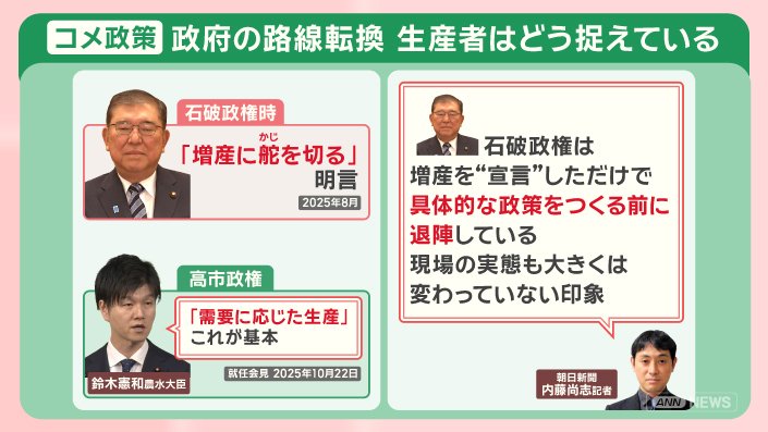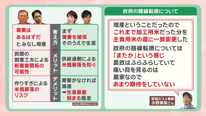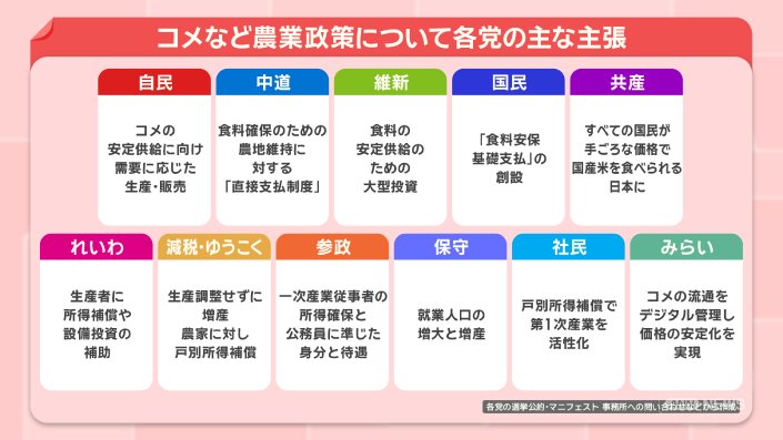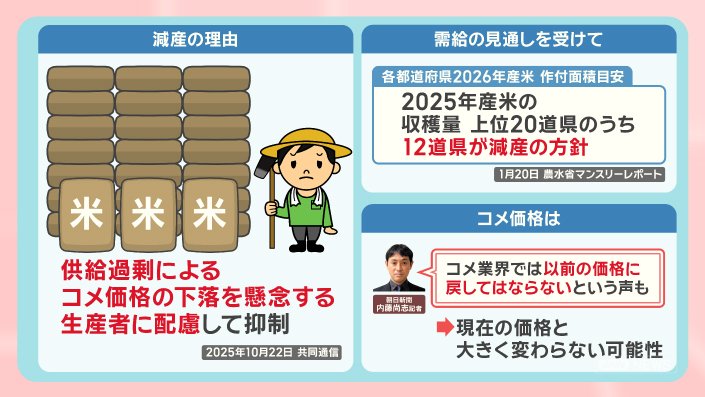 政治 モーニングショー 2026年1月27日 17:00 コメ余っているのになぜ高い?『備蓄米』が意外な要因に!?コメ政策 各党の主張 広告 1■コメ価格 高止まり なぜ?3つの要因 いつ下がる? この記事の写真は15枚 ■各地で減産 消費量も減 「夕飯だけに」コメ離れ懸念 ■政府のコメ政策 増産から“路線転換” 「またか」農家の本音 ■衆院選 公示 コメ農政 各党が掲げる政策は? (「羽鳥慎一モーニングショー」2026年1月27日放送分より) 広告 スクープ投稿 トップ 政治 選挙 記事