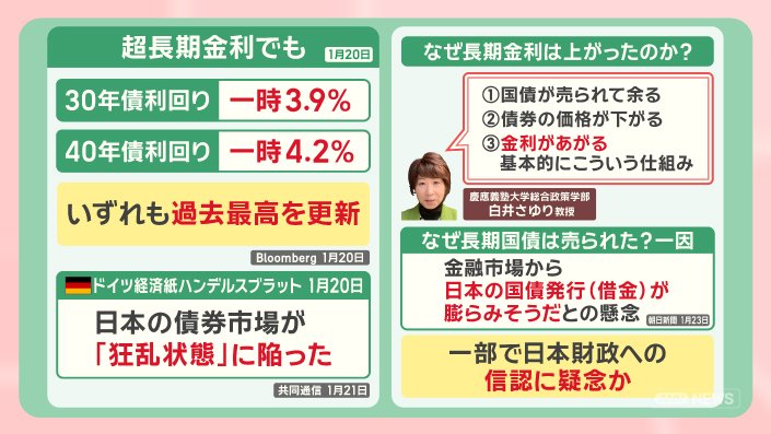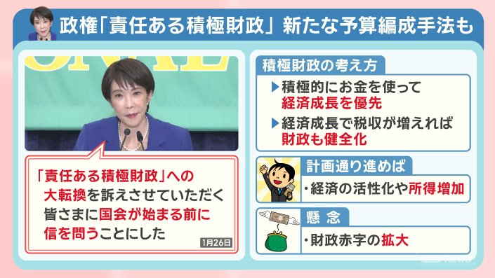 政治 モーニングショー 2026年1月28日 16:00 『責任ある積極財政』日本経済への影響とは?円安・長期金利上昇…国際社会から懸念も 広告 1■高市政権『責任ある積極財政』 複数年度で財政出動も この記事の写真は8枚 ■日本財政に市場懸念 金利高騰・国債暴落 自民も過去に警鐘 ■減税の財源どうする?各党の主張 (「羽鳥慎一モーニングショー」2026年1月28日放送分より) 広告 スクープ投稿 トップ 政治 選挙 記事