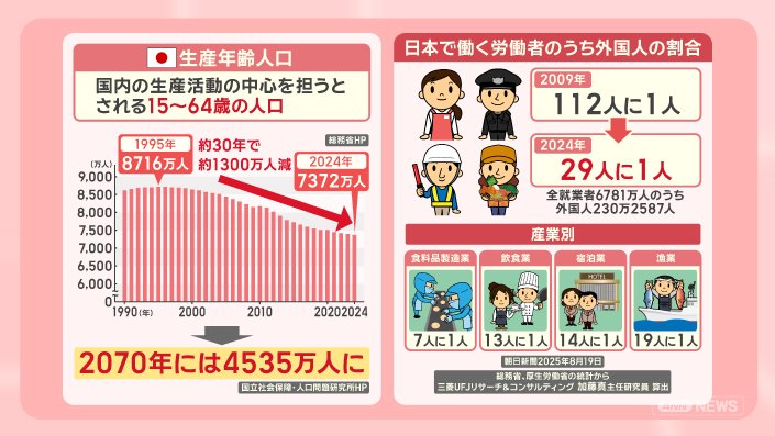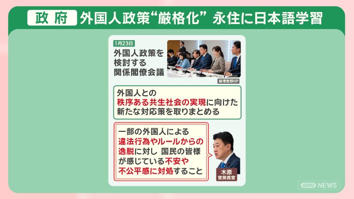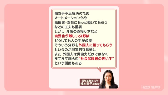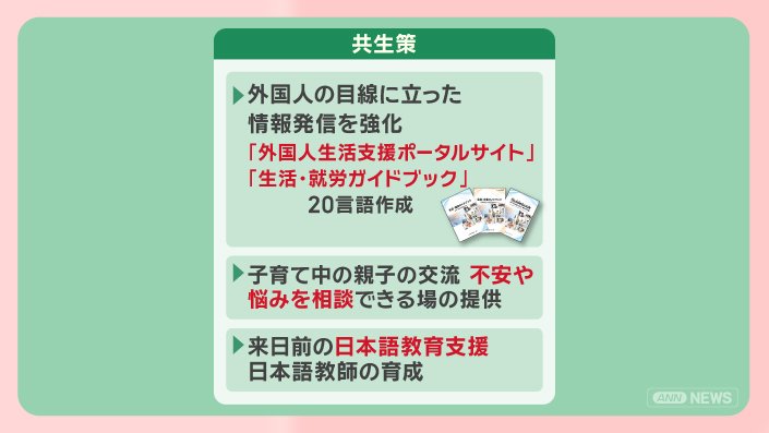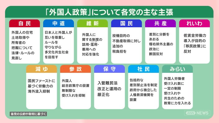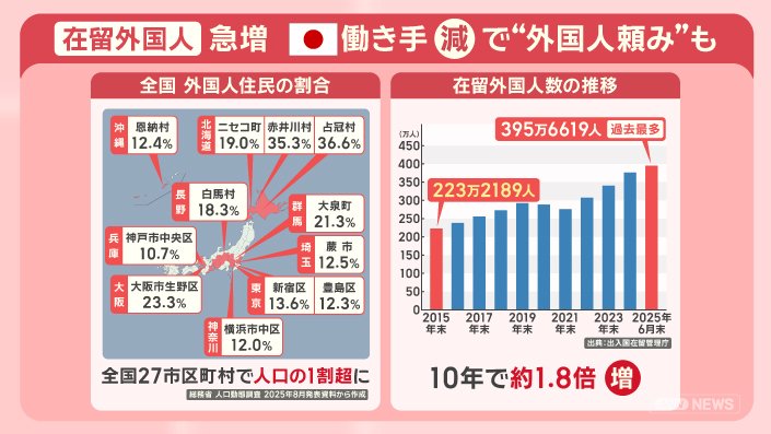 政治 モーニングショー 2026年1月29日 16:00 衆院選『外国人政策』各党の主張 働き手は年々減少 外国人頼みの現実も どう共生? 広告 1■在留外国人 10年で約2倍増加 働き手不足をカバー この記事の写真は10枚 ■外国人との共生 課題も 「負担は自治体任せ」の現状 ■政府は外国人政策“厳格化”日本語学習 不払い・未納対策も ■外国人政策 衆院選 争点の一つに 各党の訴えは? (「羽鳥慎一モーニングショー」2026年1月29日放送分より) 広告 スクープ投稿 トップ 政治 選挙 記事