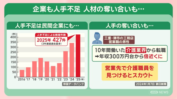 ■人手不足 行政・医療 すでに危機的地域も 人材“奪い合い”