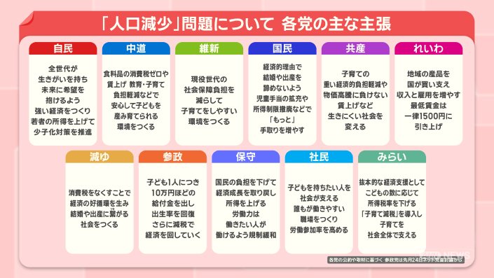 縮みゆく日本の今後や各党の政策についても見ていきます。