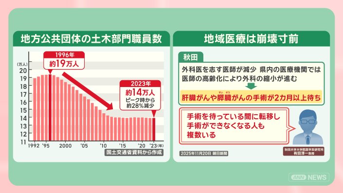 「災害対応に不可欠な公務員の確保が困難な自治体も出てきている。制度や予算があっても人手不足で行き詰まる事例が全国で広がっている」