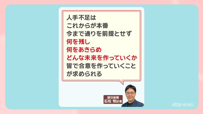 「人手不足はこれからが本番。今まで通りを前提とせず、何を残し、何をあきらめ、どんな未来を作っていくか、皆で合意を作っていくことが求められる」