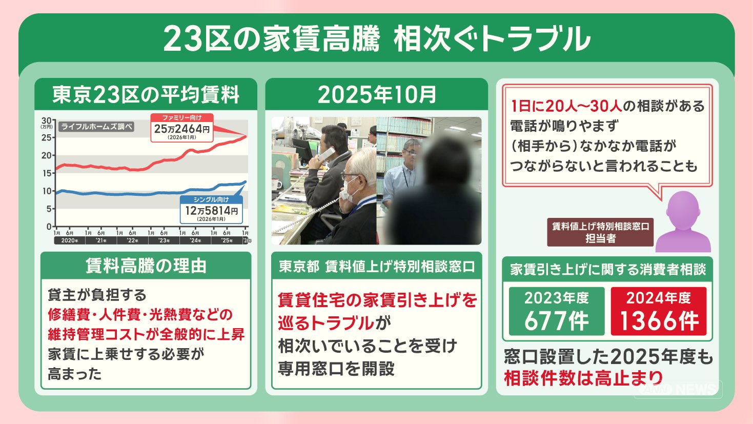 賃料が高騰するなかで、2025年10月、東京都は『賃料値上げ特別相談窓口』を設置しました。