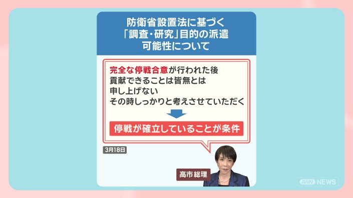 「完全な停戦合意が行われた後、貢献できることは皆無とは申し上げない。その時しっかりと考えさせていただく」と述べ、停戦が確立していることが条件だとしました。