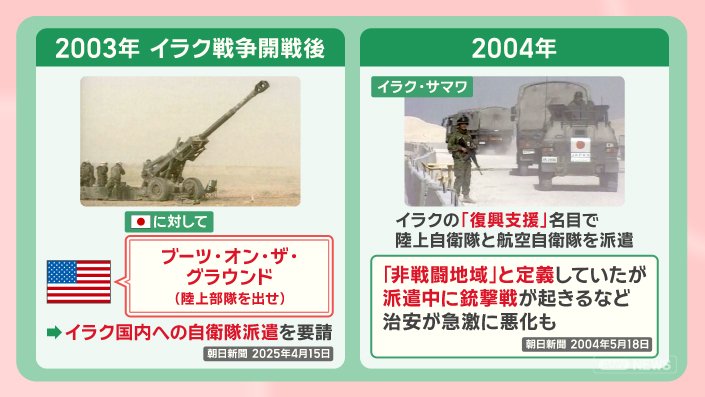 翌2004年、日本は、イラクの『復興支援』の名目で、陸上自衛隊と航空自衛隊を派遣。
