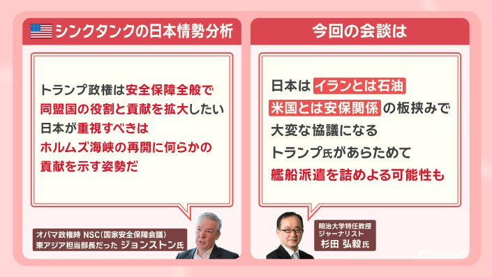「日本はイランとは石油、アメリカとは安保関係の板挟みで、大変な協議になる。トランプ氏があらためて艦船派遣を詰めよる可能性も」