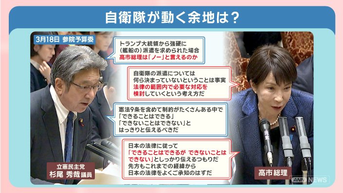 「トランプ大統領から強硬に、(艦船の)派遣を求められた場合、高市総理は『ノー』と言えるのか」