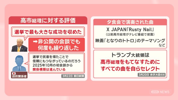 トランプ大統領は高市総理をもてなすためにすべての曲を自らセレクトしたといいます。