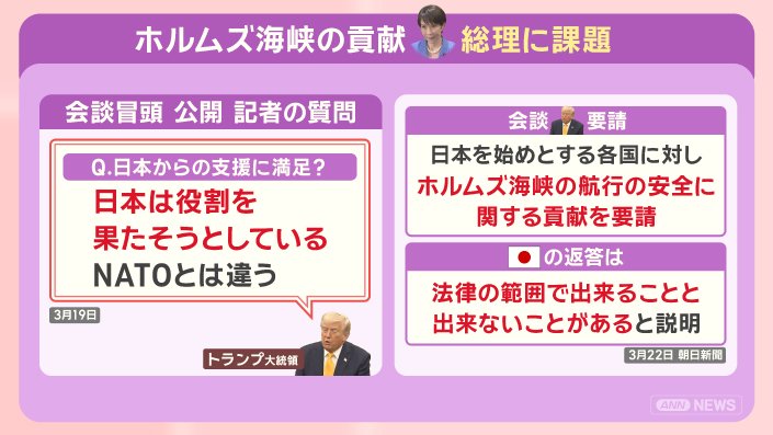 ■会談の焦点 ホルムズ海峡の貢献要求 高市総理に課題も