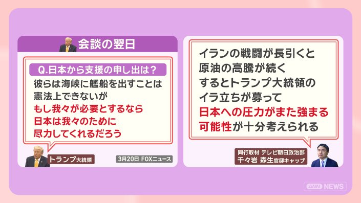 「トランプ氏はいま世界から孤立している」と話していて、日本は“寄り添い作戦”で首脳会談に臨んだといいます。
