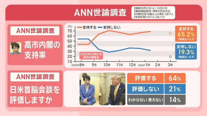 支持するが、65.2%で、前回より3.2ポイント上がりました。