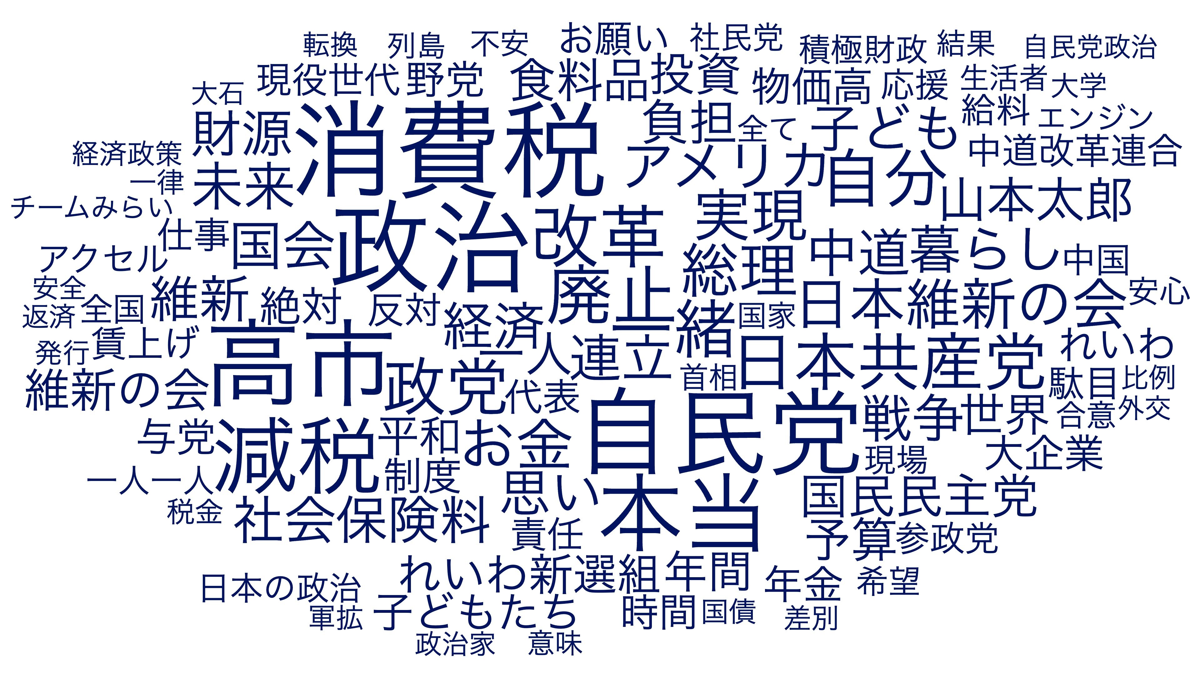 主要各党が5分以内の動画で訴えた「頻出ワード」(データ:YouTube APIを用いてベストエフォートで取得、調査期間:1月27日―2月5日、監修:立命館大学 谷原つかさ准教授)