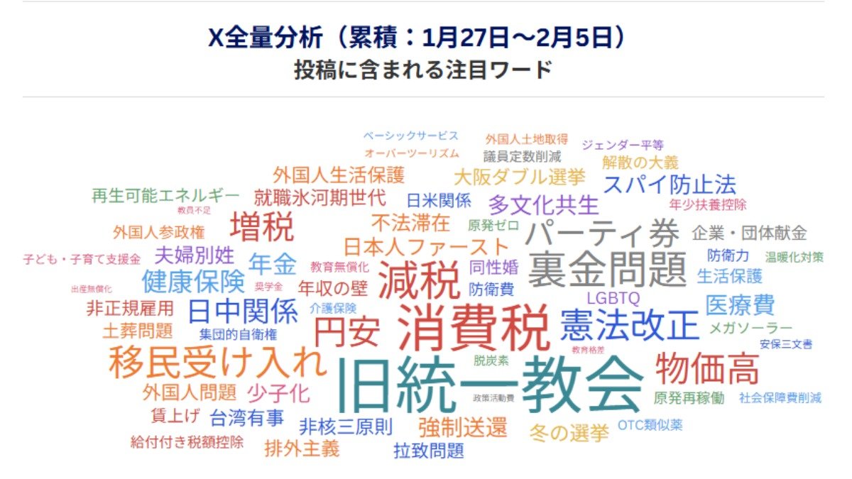X全量分析 投稿に含まれる注目ワード(データ協力:NTTドコモビジネスX / Meltwater、調査期間:1月27日―2月5日)