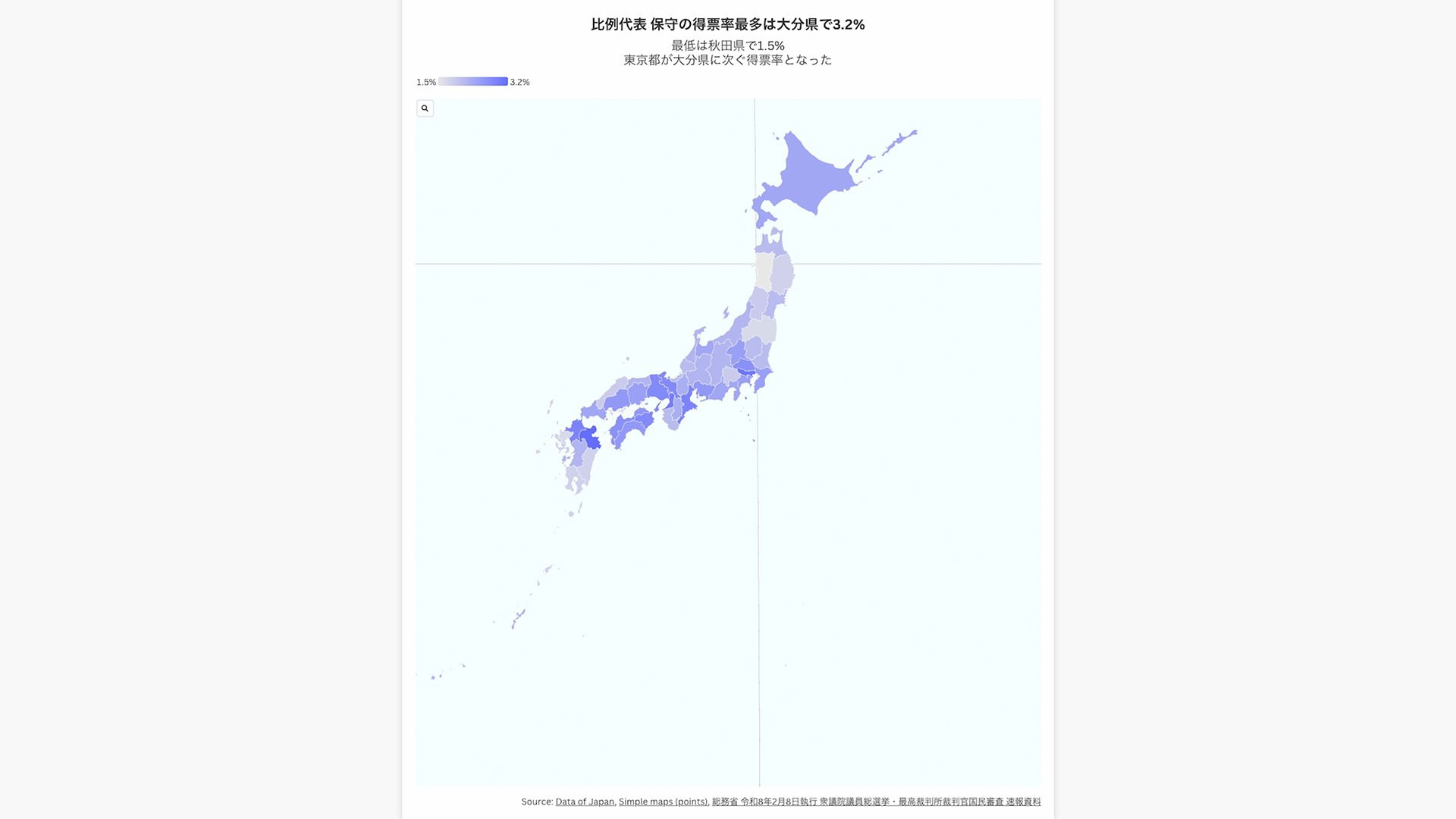 比例代表 保守の得票率最多は大分県で3.2%