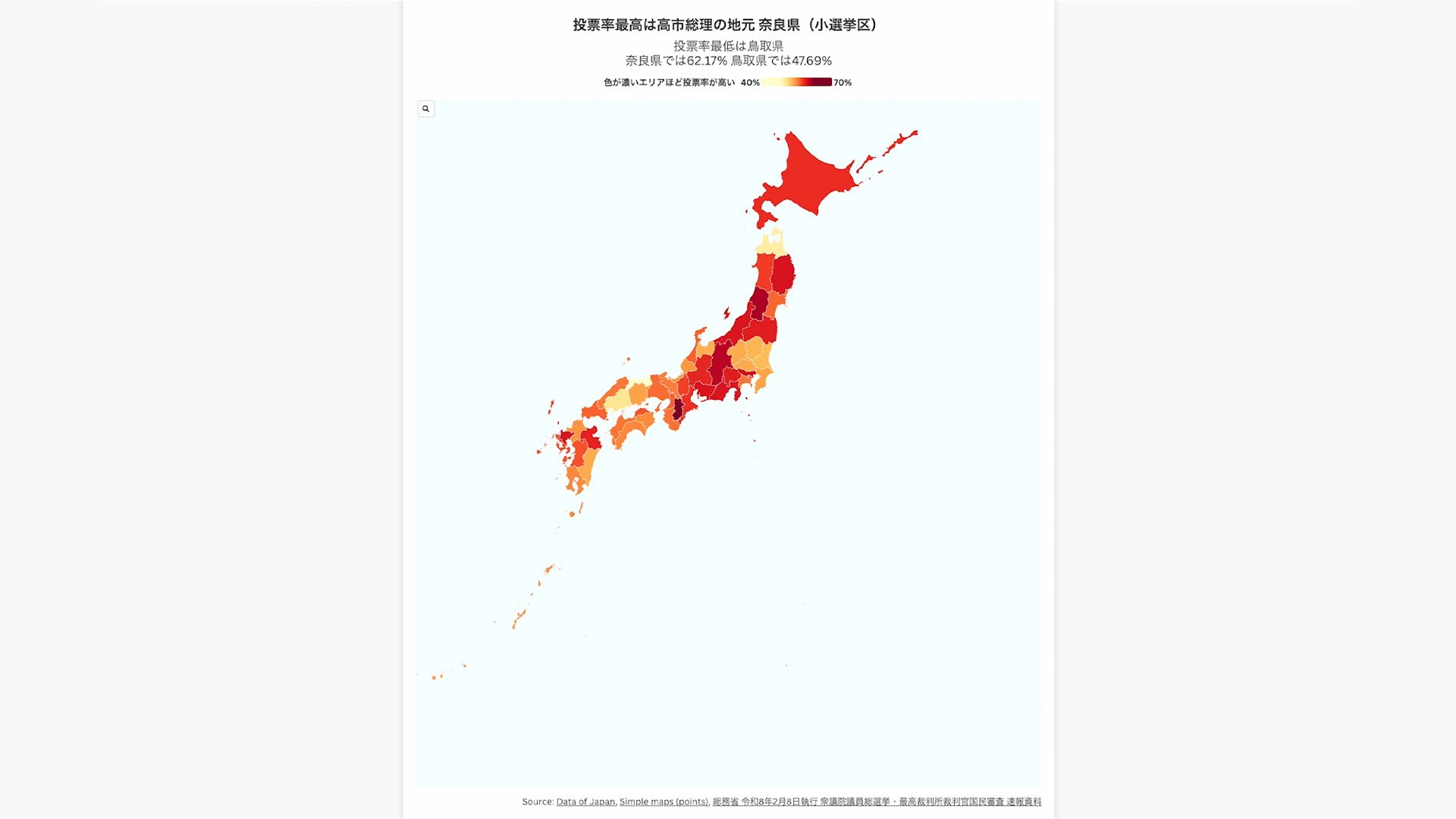 投票率最高は高市総理の地元 奈良県(小選挙区)