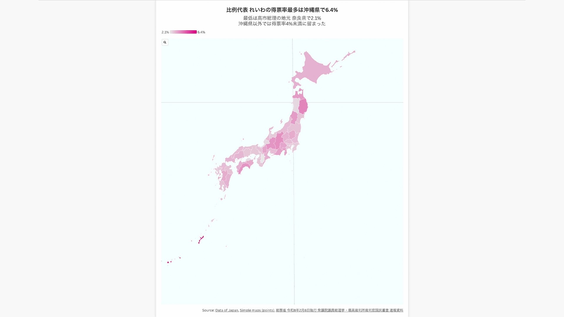 比例代表 れいわの得票率最多は沖縄県で6.4%