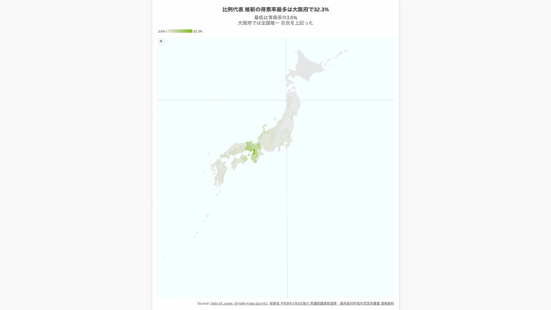 比例代表 維新の得票率最多は大阪府で32.3%
