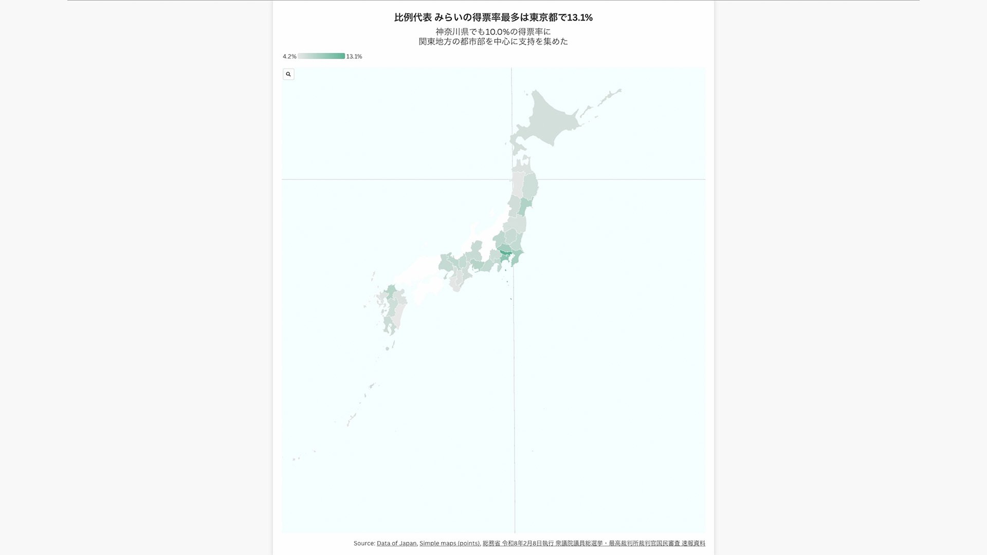 比例代表 みらいの得票率最多は東京都で13.1%