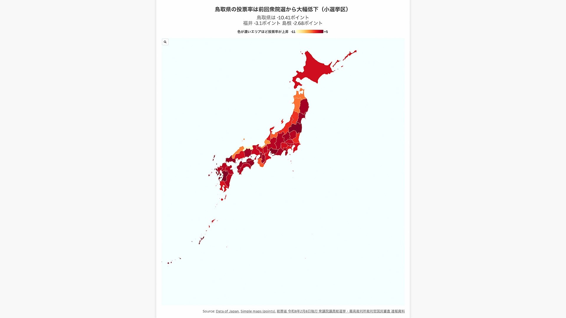 鳥取県の投票率は前回衆院選から大幅低下(小選挙区)