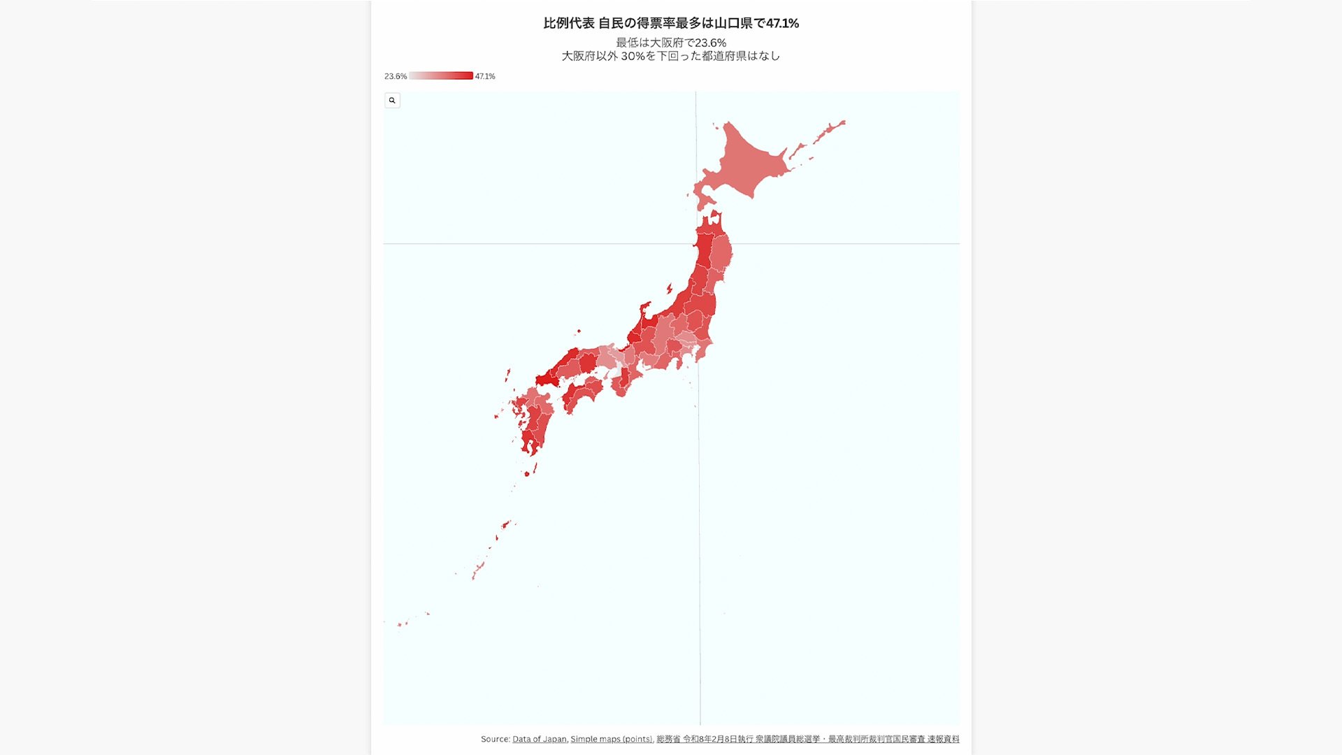 比例代表 自民の得票率最多は山口県で47.1%