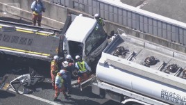 タンクローリーにトラック2台追突か 運転手2人が病院搬送 名古屋高速
