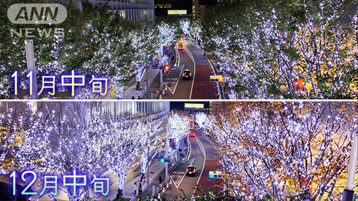 実際に2年前、東京・六本木のけやき坂通りのイルミネーションを時期をずらして同じ位置から写真を撮ってみました。
