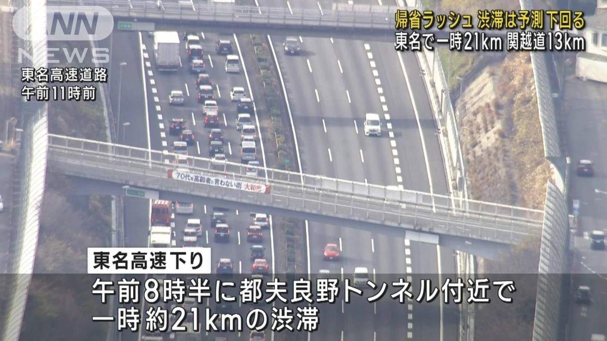 年末年始をふるさとなどで過ごす人たちの帰省ラッシュは30日、東名で一時、渋滞21キロなど各高速道路は予測ほどの混雑にはなっていません。