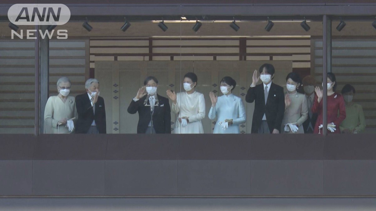 2日、3年ぶりに行われた皇居の一般参賀では1回目に天皇皇后両陛下や上皇ご夫妻、皇族方、合わせて15人が宮殿のベランダに立たれました。