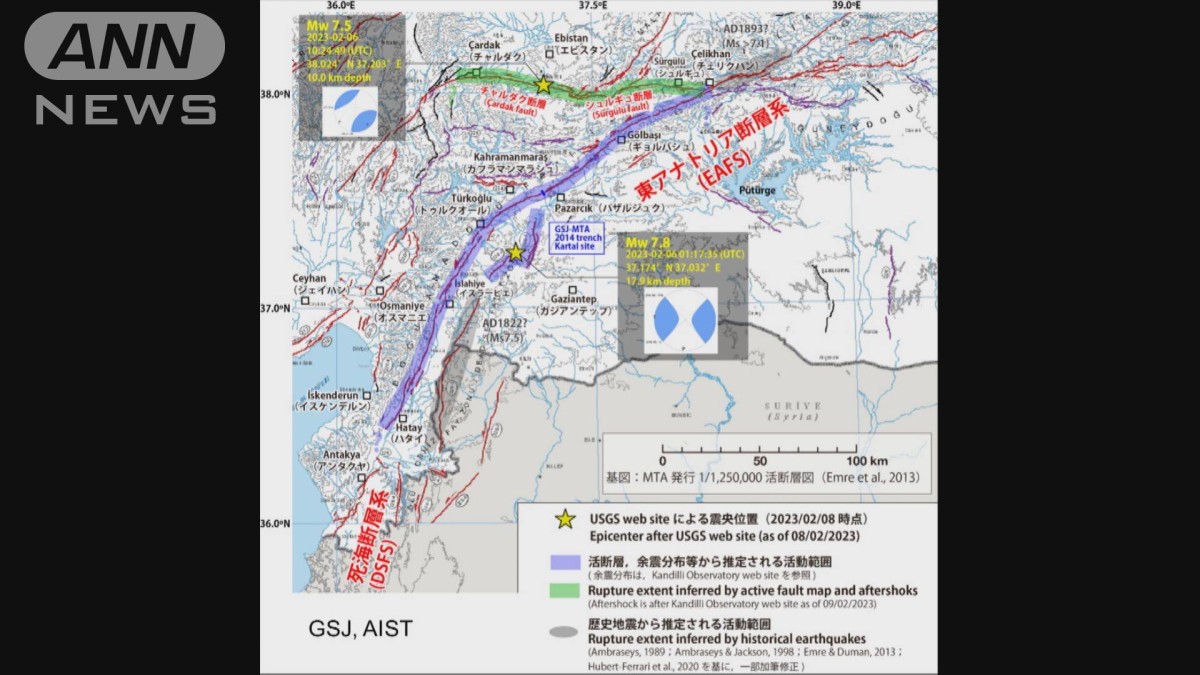 6日に起こったトルコの大地震で最初に起きたマグニチュード7.8の地震では、動いた断層の長さが250キロほどだったことが産業技術総合研究所の分析で分かりました。
