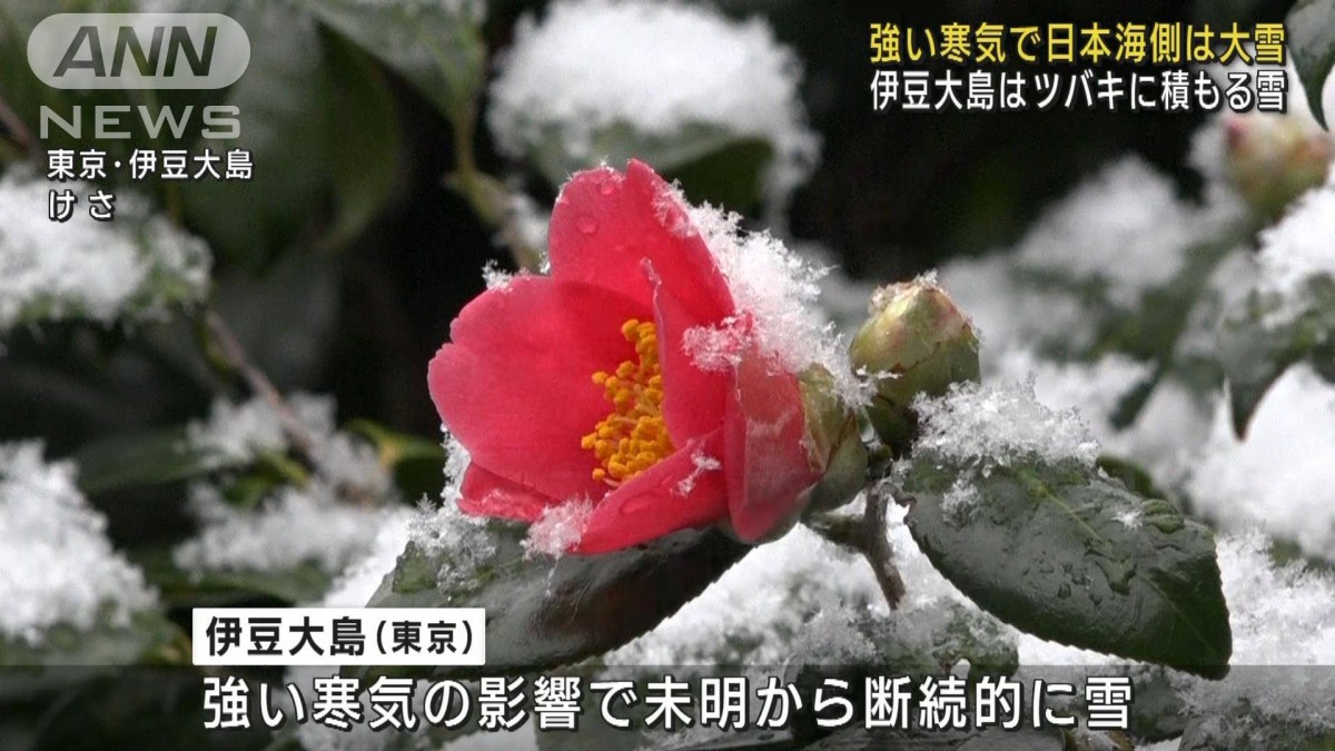 また、太平洋側も強い寒気に覆われていて、東京都の伊豆大島ではツバキの花に降り積もる雪の映像が捉えられました。