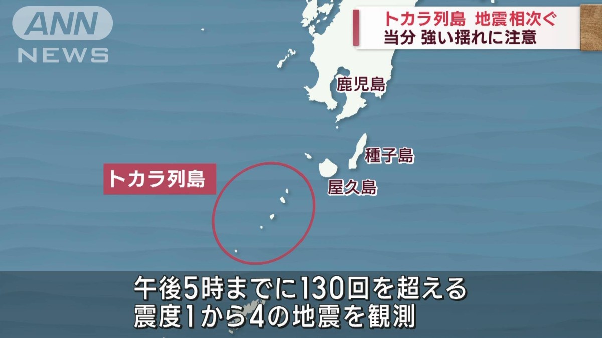 鹿児島県のトカラ列島近海を震源とする地震が相次いでいて、9日だけで130回以上の揺れを観測しています。