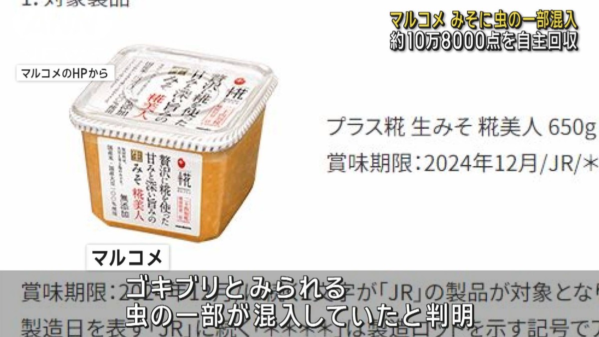 食品メーカーのマルコメは製造したみそにゴキブリとみられる虫の一部が混入していたとして、自主回収を進めています。