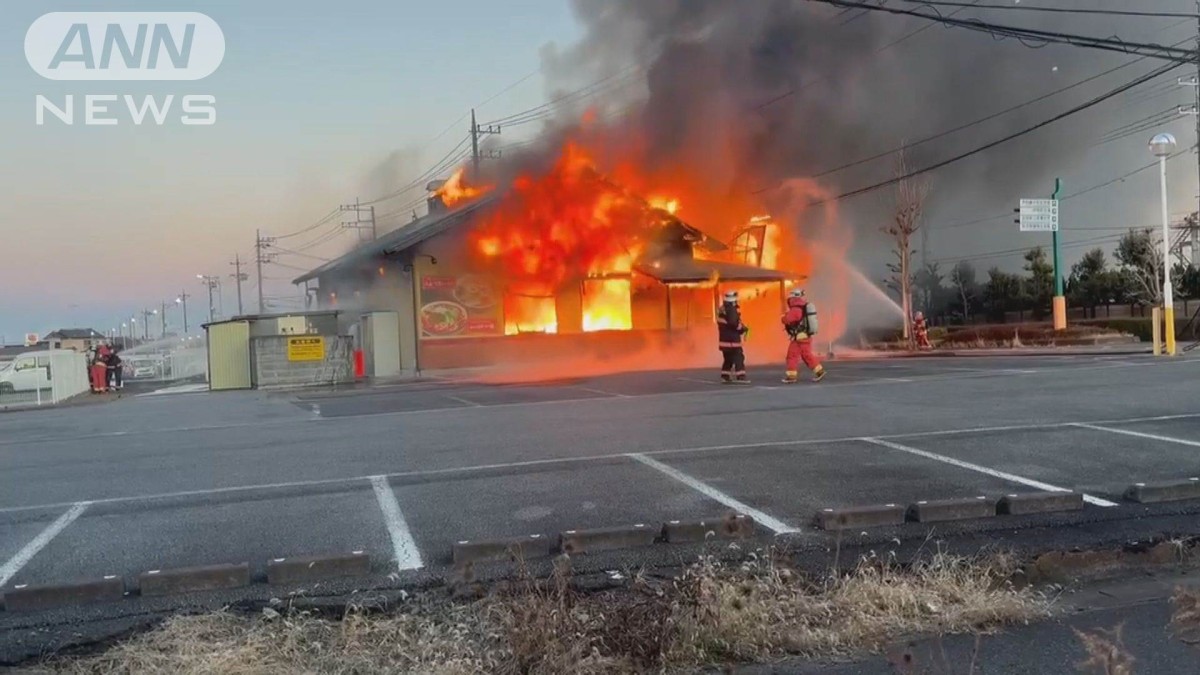 茨城県阿見町の営業中の中華料理店が炎に包まれ、全焼しました。店は営業中で、客2人と店員2人は逃げて無事でした。