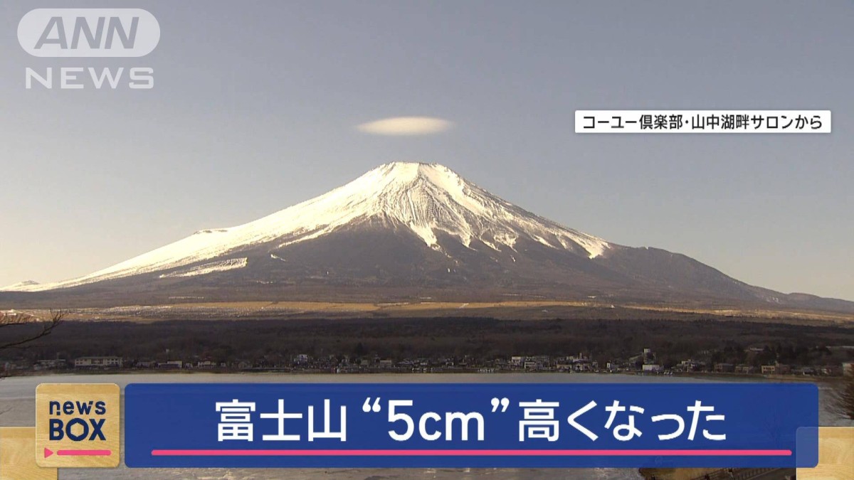 国土地理院によりますと、GPS(全地球測位システム)による新しい測定方法で富士山の標高を調べると、これまでより5センチ高い3775.56メートルだったということです。